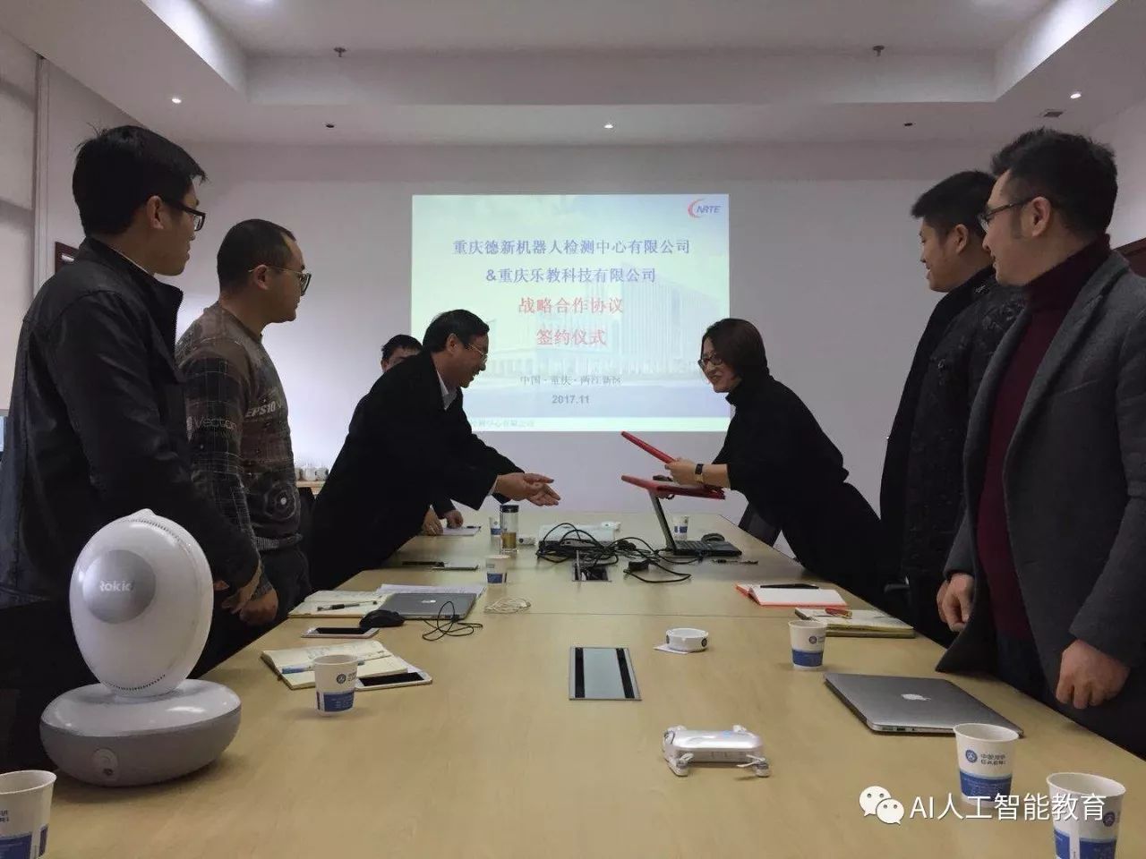 11月30日上午,樂(lè )教科技與德新機器人檢測中心簽訂了戰略合作協(xié)議。雙方就共同組建服務(wù)機器人高校培訓等一系列深入合作達成一致。通過(guò)合作,積極推動(dòng)人工智能和機器人產(chǎn)業(yè)生態(tài)的聚集和發(fā)展,在高校共建機器人檢測服務(wù)網(wǎng)絡(luò ),培養更多機器人方面的人才。