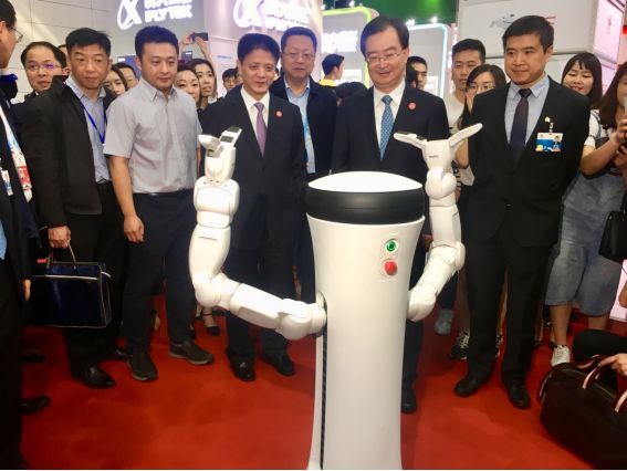領(lǐng)導視察一維弦自主研發(fā)的機器人MoRo