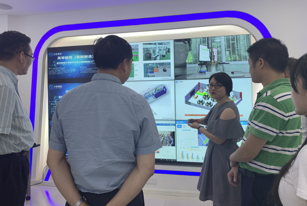 張總為副區長(cháng) 于強講解樂(lè )教集團為高等院校/中職院校全力打造智能制造創(chuàng )新教學(xué)體系建設, “1:1智能工廠(chǎng)”實(shí)驗室/“虛實(shí)結合”仿真實(shí)驗平臺/數字資源及現代應用技術(shù)實(shí)驗室建設。