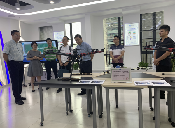 林總為領(lǐng)導們講解有關(guān)無(wú)人機教育與應用服務(wù)領(lǐng)域、智能教育、人工智能課情分析系統、虛擬學(xué)習平臺等。